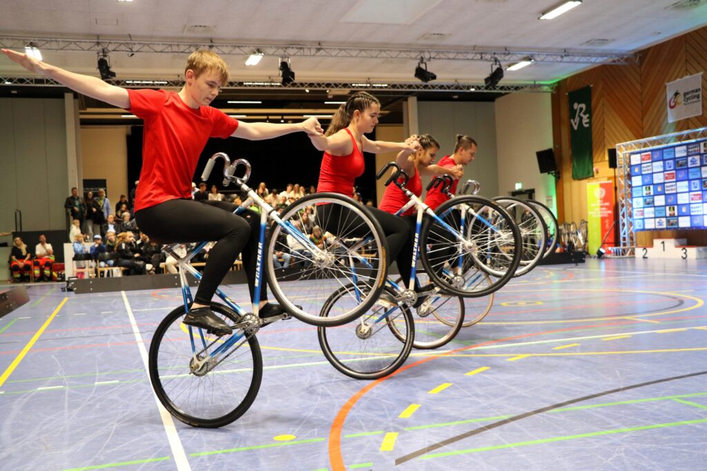Nachdem die Weltmeisterinnen in der Vorrunde mit 115,14 von der Fläche gingen, steigerten sich Henny Kirst/Antonia Bärk (Bonn-Duisdorf) im Finale recht deutlich. 146,56, damit verbesserten sie ihre persönliche Bestleistung um 0,2 Punkte. Dagegen kam Kim-Leah Schlüter/Nele Jodeleit (Knetterheide) nicht an. Mit 125,96 hatten sie die Vorrunde gewonnen, mit 134,13 mussten sie ich den Weltmeisterinnen im Finale geschlagen geben. Dritte im Bunde waren an diesem Tag Katharina Hupfauer/Sabine Tausch (Pullach). 93,23 bzw. 93,36 ihr Ergebnis, was Schlussrang 3 bedeutet. Erneut am Finale vorbei fuhren Lisa und Sara Knobelspies (Volkertshausen), die mit 91,69 ihr Können an diesem Tag nicht abrufen konnten. «Mit dem Start in Ebersheim und damit unserer Leistung waren wir nicht wirklich zufrieden», so Lisa. «Leider haben einige Übungen sind geklappt, was uns wertvolle Punkte gekostet hat. Aber, unsere neue Übung, der Kopfstand-Handstand hat geklappt.» « In den nächsten beiden Wochen bis zur Deutschen Meisterschaft müssen wir nochmals intensiv an den Fehlern arbeiten», so Sara. «Am kommenden Wochenende wolle wir beim Bezirks-Pokal in Volkertshausen nochmals einen sturzfreien Wettkampf fahren, um mit einem guten Gefühl zur DM zu reisen.» WM-Zwischenstand: Kirst/Bärk (676,87), Schlüter/Jodeleit (628,58), Hupfauer/Tausch (459,31), Knobelspies-Knobelspies (386,74).