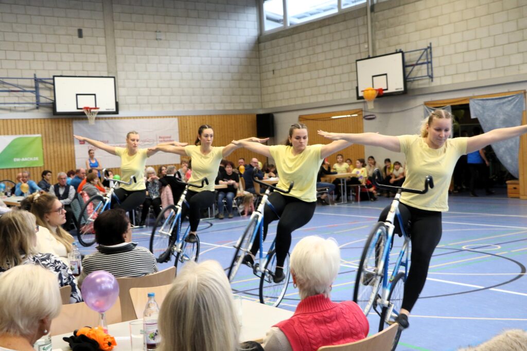Diesen Werdegang beim RMSV Aach zeigten die verschiedenen Formationen von den Anfängern über die erfolgreichen Schüler bis zu den Elitesportlern, bevor alle gemeinsam auf der Fläche am Schluß die Pyramide. Bürgermeister Manfred Ossola, lies es sich dann nicht nehmen, alle Deutschen Meister des Jahres 2025 (insgesamt waren es 7 DM-Titel) – es sind dies: Emelie Lehmann, Saskia Grote, Mayla Rietschle, Haylie Rietschle, Jana Setzer, Koshi Mirzai, Yannick Gaißer, Jone Burow, Lena Andorinha, Rebecca Grote, Alina Bötzer, Franziska Bötzer, Sabrina Bürßner, Carolin Schmid, Sarah Bötzer und Natalie Grote – mit einem Geschenk der Stadt Aach zu ehren.