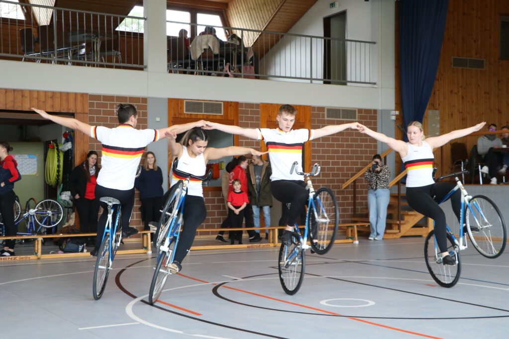 Auch für den 4er Einrad aus Nenzingen (Janosch Hartleb / Hannes Hartleb / Luisa Störkle / Clara Rümmelin) lief es auch noch nicht so rund. „Zwar ohne Absteiger sind sie durchgekommen“, so Nenzingens Trainer Fank Ruhland. „Wir konnten noch nicht so regelmäßig trainieren, sodass sich die vielen Haltungsfehler am Ende summierten. Daran müssen wir bis zu den kommenden Wettkämpfen im März noch einiges verbessern.“